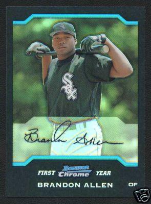 Brandon Allen was drafted by the White Sox in the fifth round of the 2004 draft, out of high school in Montgomery, Texas. He was a power-hitting slugger with questions about polish and defense. HIs pro debut was unimpressive: .205/.280/.314 for Bristol in the Appy League, with 16 walks and 60 strikeouts in 185 at-bats. He'd get a Grade C based on power potential and draft status, but with the need for a great deal of refinement.